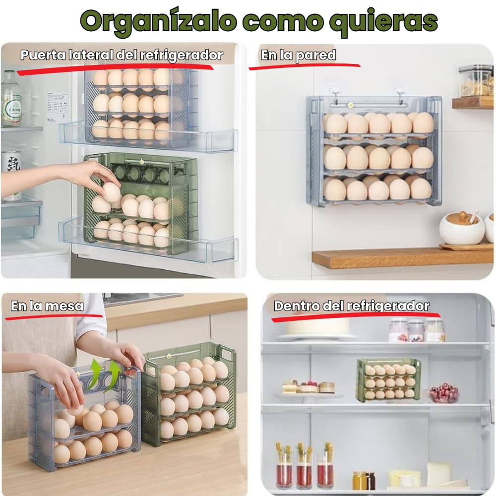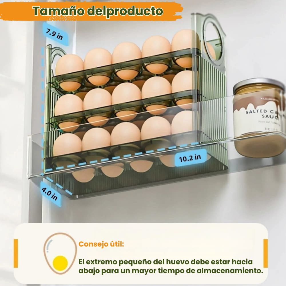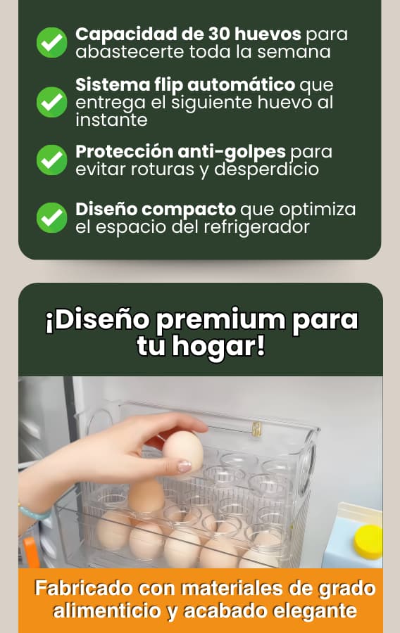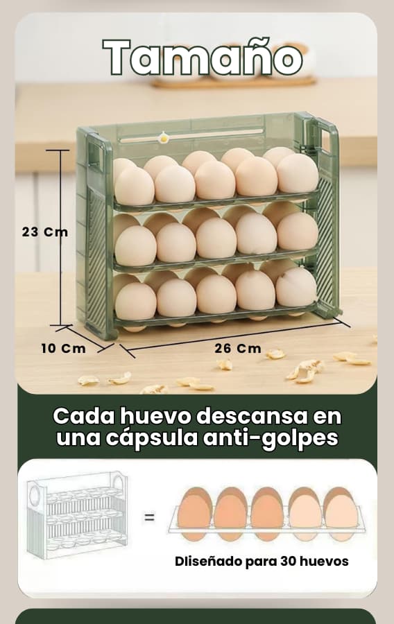 Sí. Cada huevo se coloca en una ranura individual con diseño anti-golpes que reduce el riesgo de roturas incluso con portazos o movimientos bruscos.
