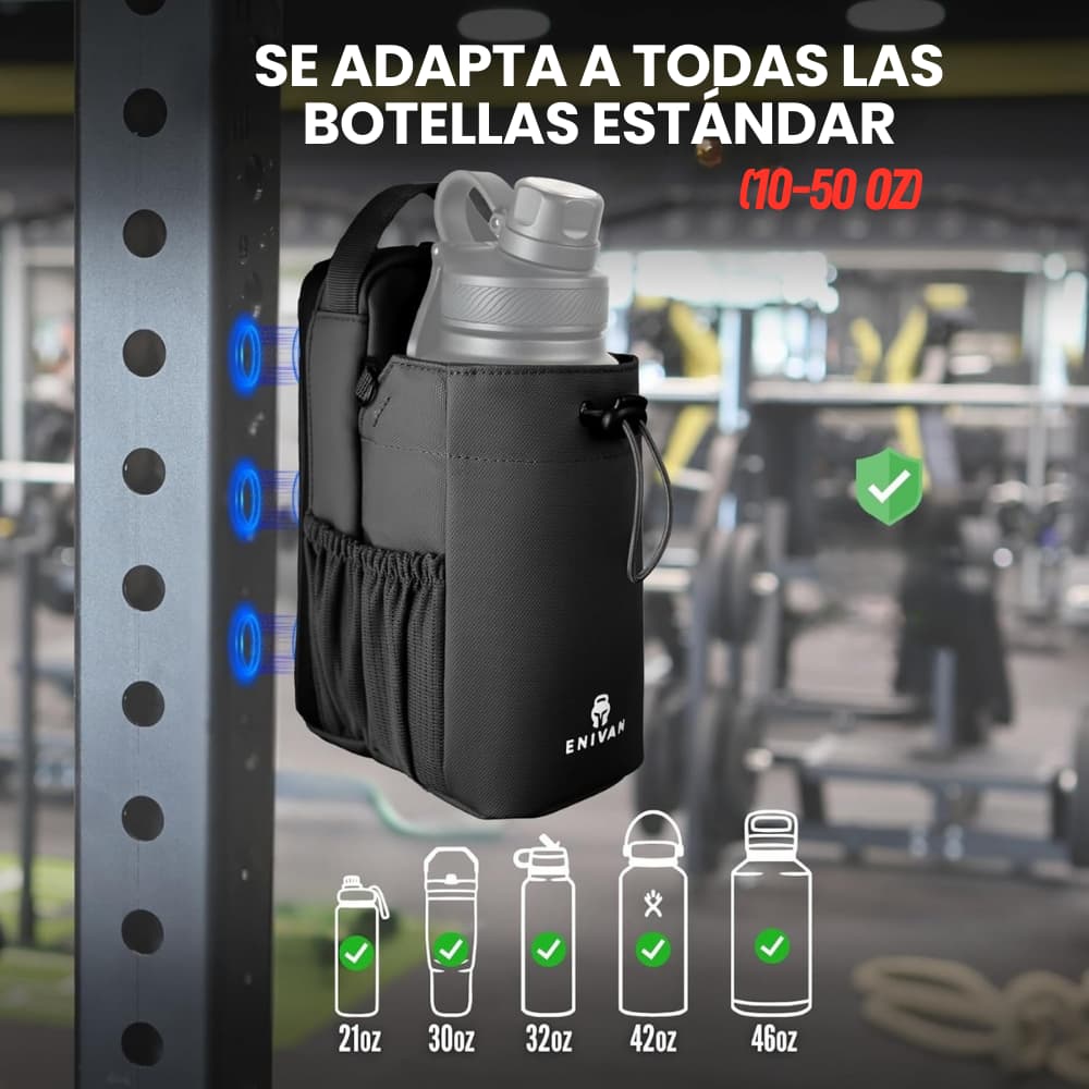 Muy versátil. Incluye correa de hombro ajustable y asa de mano, lo que te permite usarla como bandolera, bolso de mano o directamente adherida al equipo. Ideal para gimnasio, viajes o actividades al aire libre.