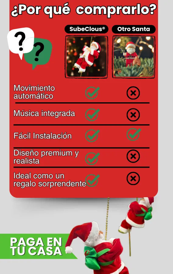 Incluye 1 figura SubeClaus®, cuerda decorativa y caja de regalo.